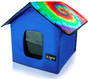 This is a highly rated heated cat house with a very stand out red or blue color.
